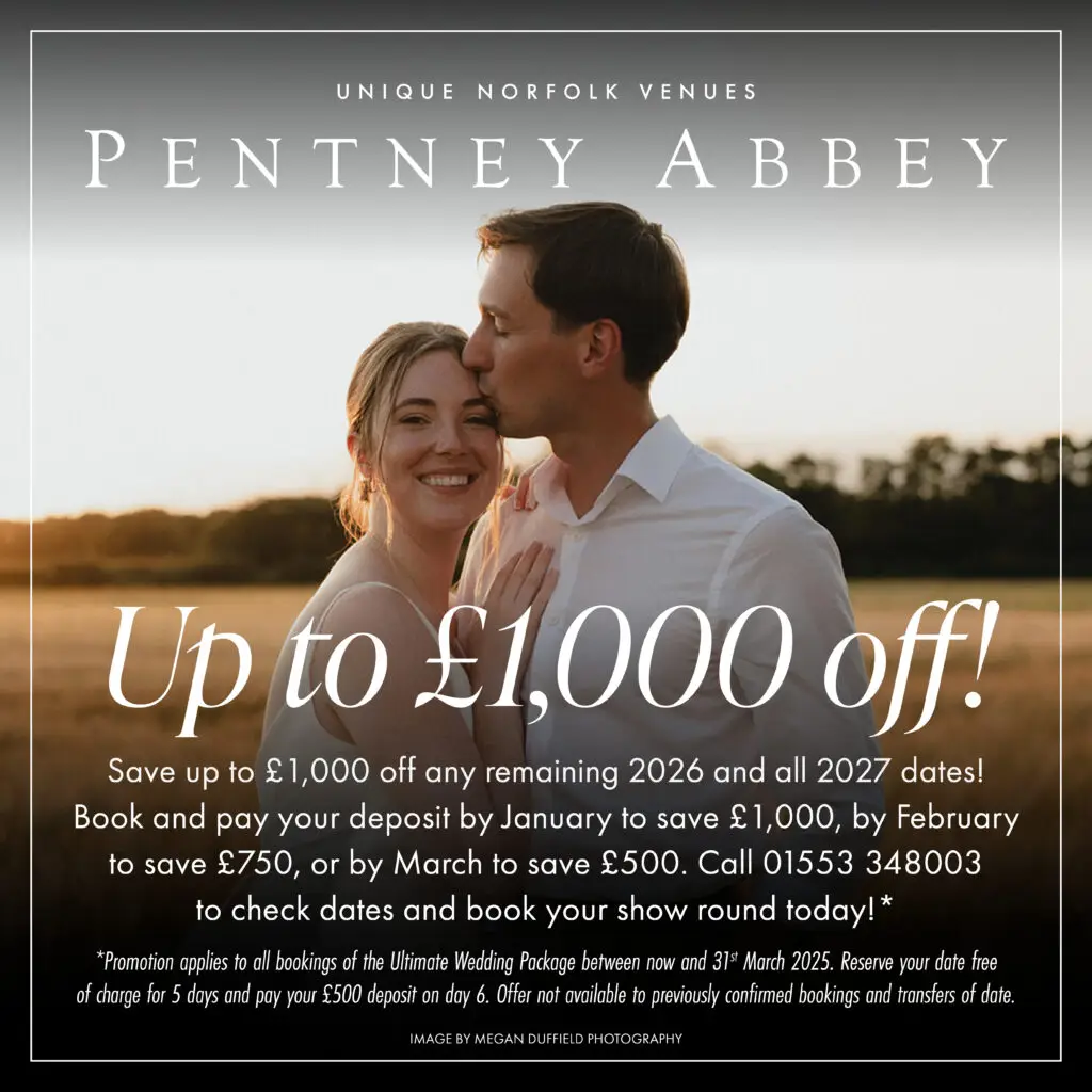 *Promotion applies to all bookings of the Ultimate Wedding Package between now and 31st August 2025. Reserve your date free of charge for 5 days and pay your £500 deposit on day 6. Offer not available to previously confirmed bookings and transfers of date.